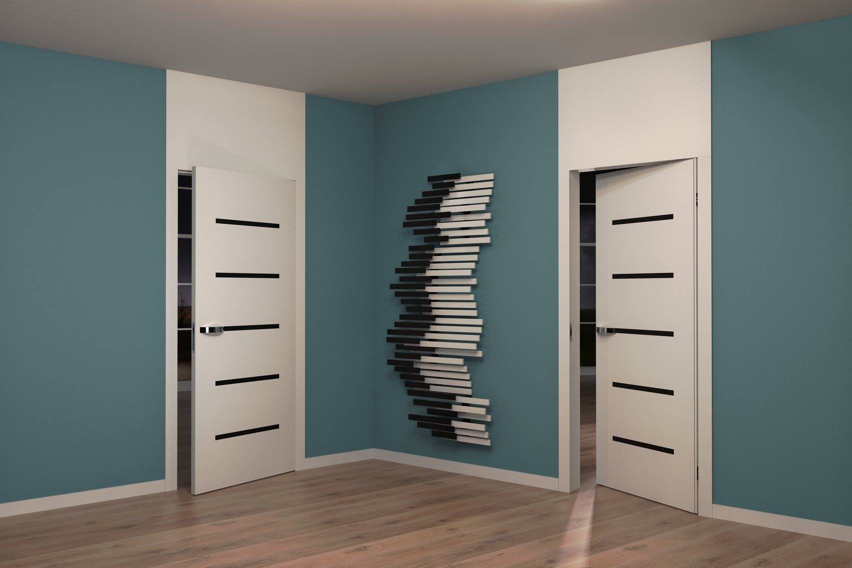 Kolekcja NOVUM z przeszkleniem poziomym o różnych szerokościach w zależności od modelu. Model NOVUM 1 i 2 zawiera przeszklenie poprzeczne o szerokości 50 mm, NOVUM 3 – 87 mm, NOVUM 4 – 135 mm. Modele kolekcji NOVUM wykonywane są w szerokiej gamie kolorystycznej. Profil skrzydła drzwiowego wyprodukowany jest na bazie ramiaka z drewna iglastego oraz szkła akrylowego mlecznego (AM). Na zamówienie dostępne jest w tym modelu również szkło akrylowe czarne (AC). Technologia konstrukcyjna skrzydła sprawia, że modele NOVUM posiadają wysokie własności wygłuszające. Skrzydło jest obustronnie oklejone płytą HDF 5 mm i wykończone według zamówienia. Możliwość wykończenia fornirem z lakierem bezbarwnym lub lakierem kryjącym, według preferencji.
