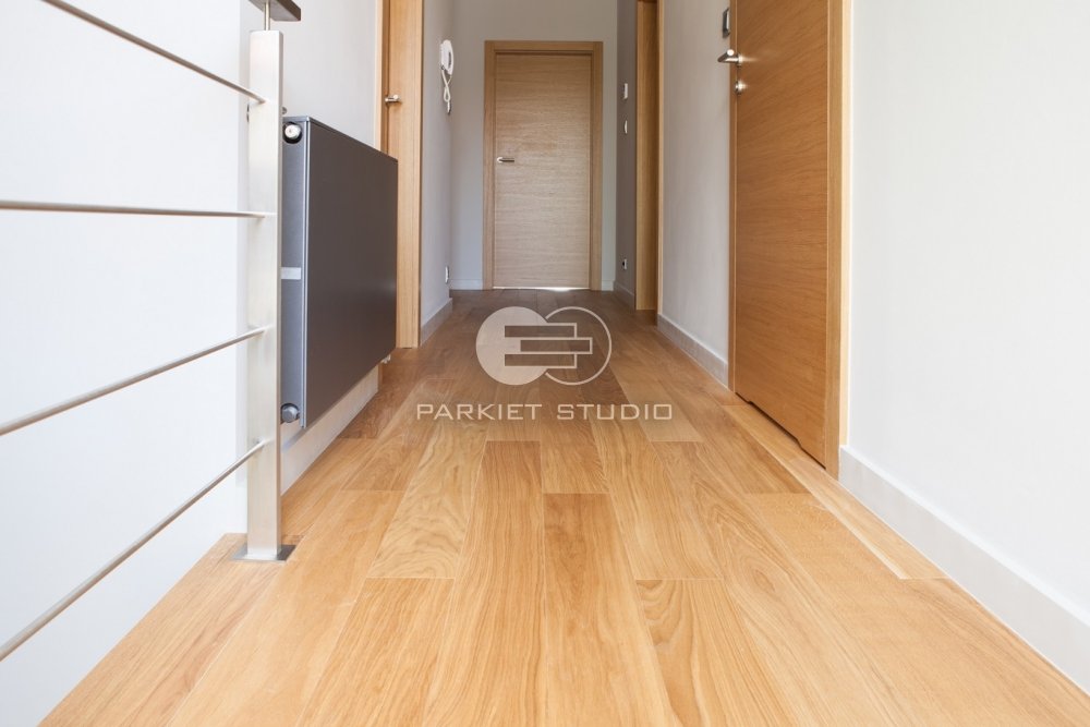 GLASS DOOR T2 HORIZONTAL LAYERING - 45 DEGREE SLOPED DOOR FRAME - 80MM STRIPS - NATURAL OAK VENEER - CONCEALED HINGES