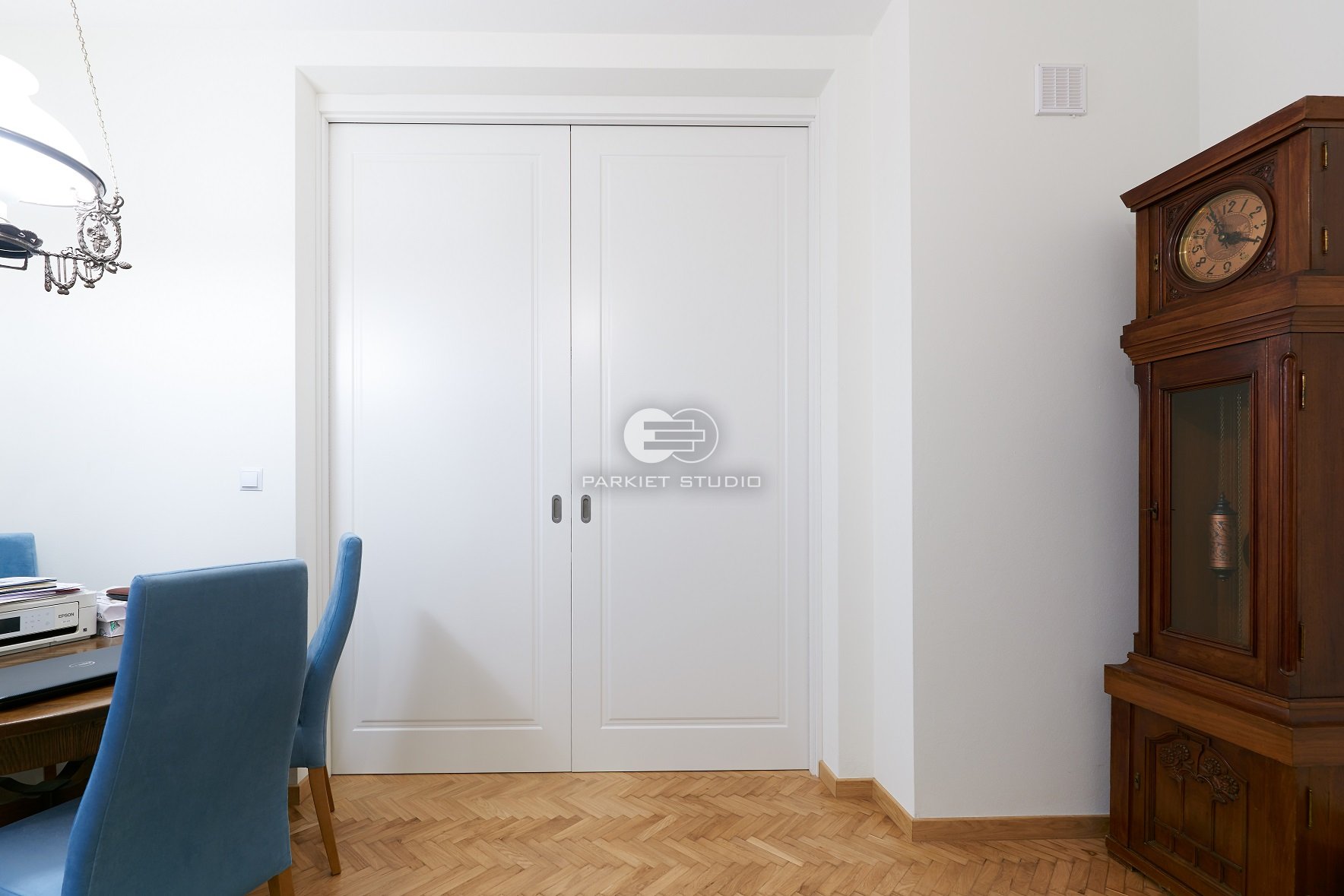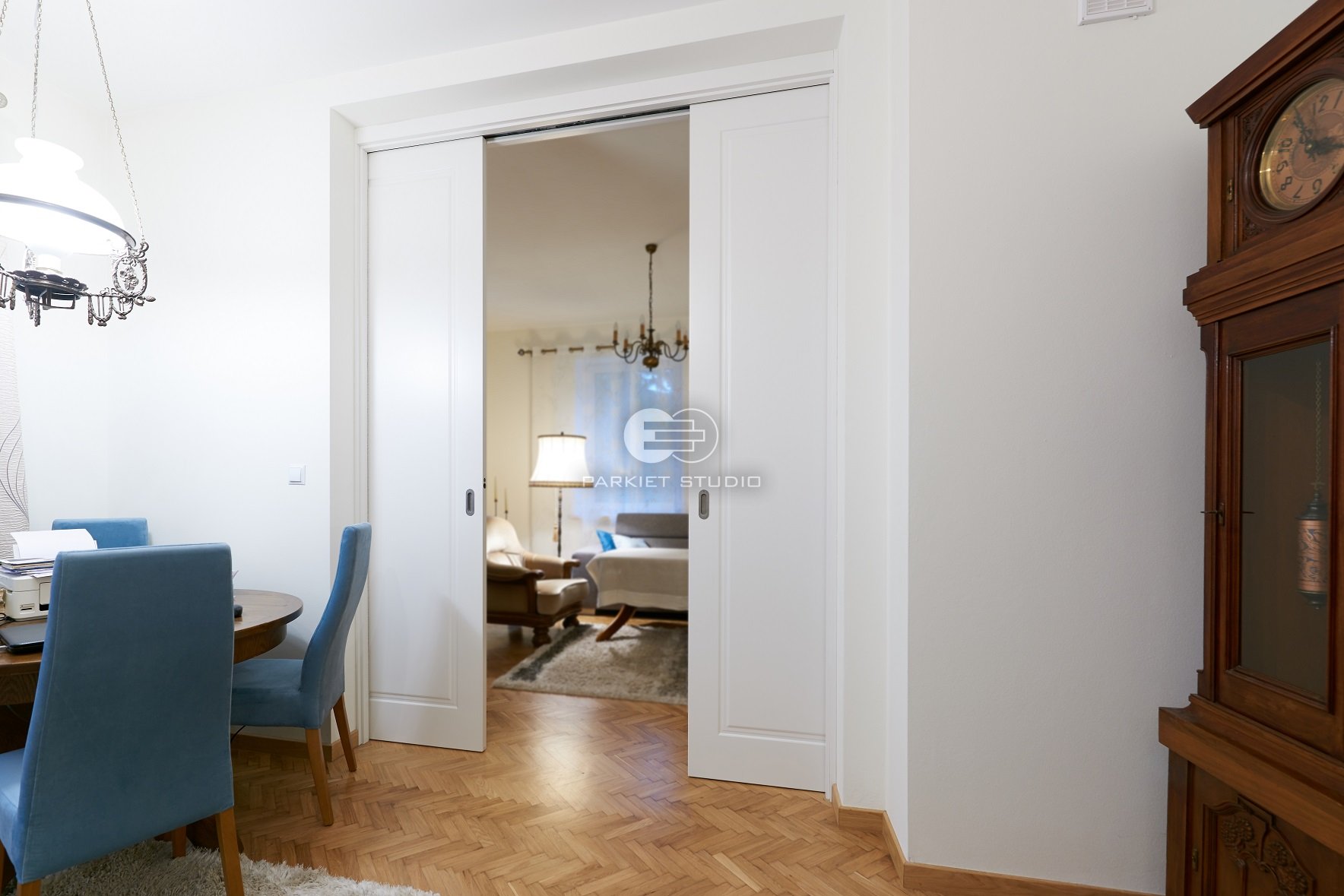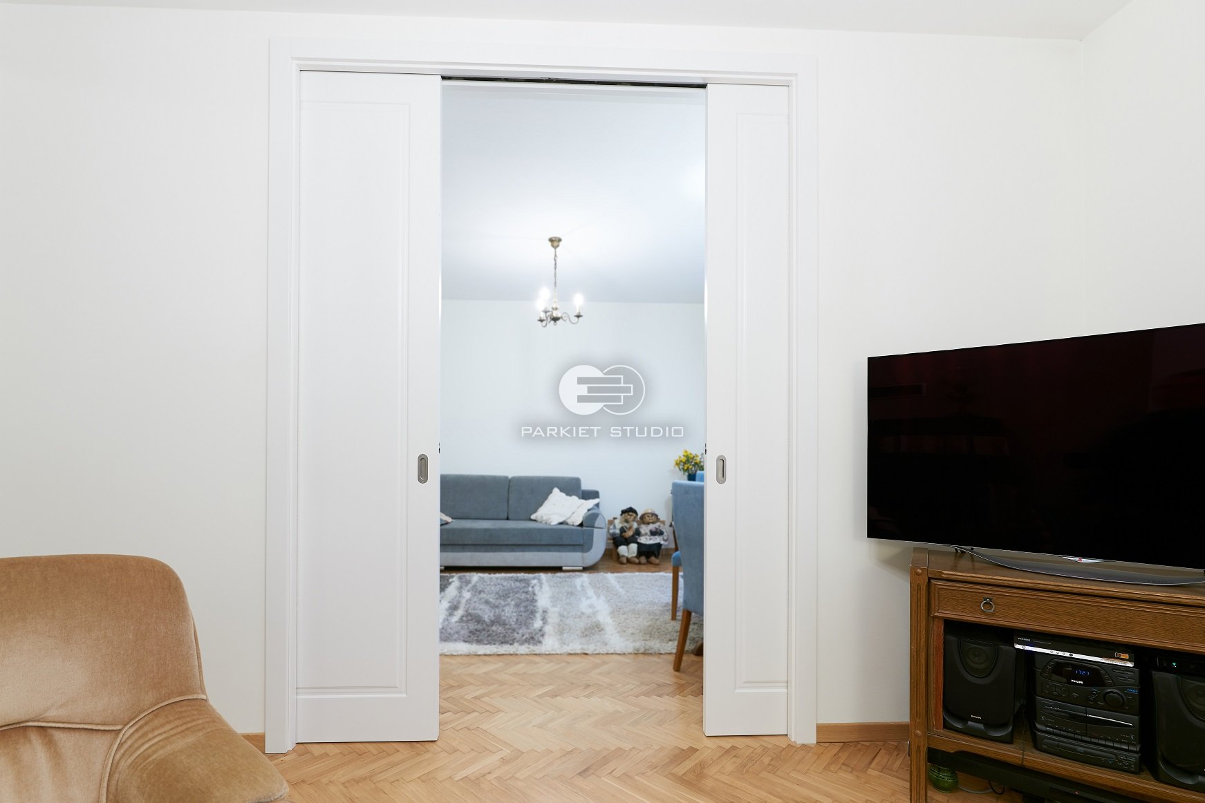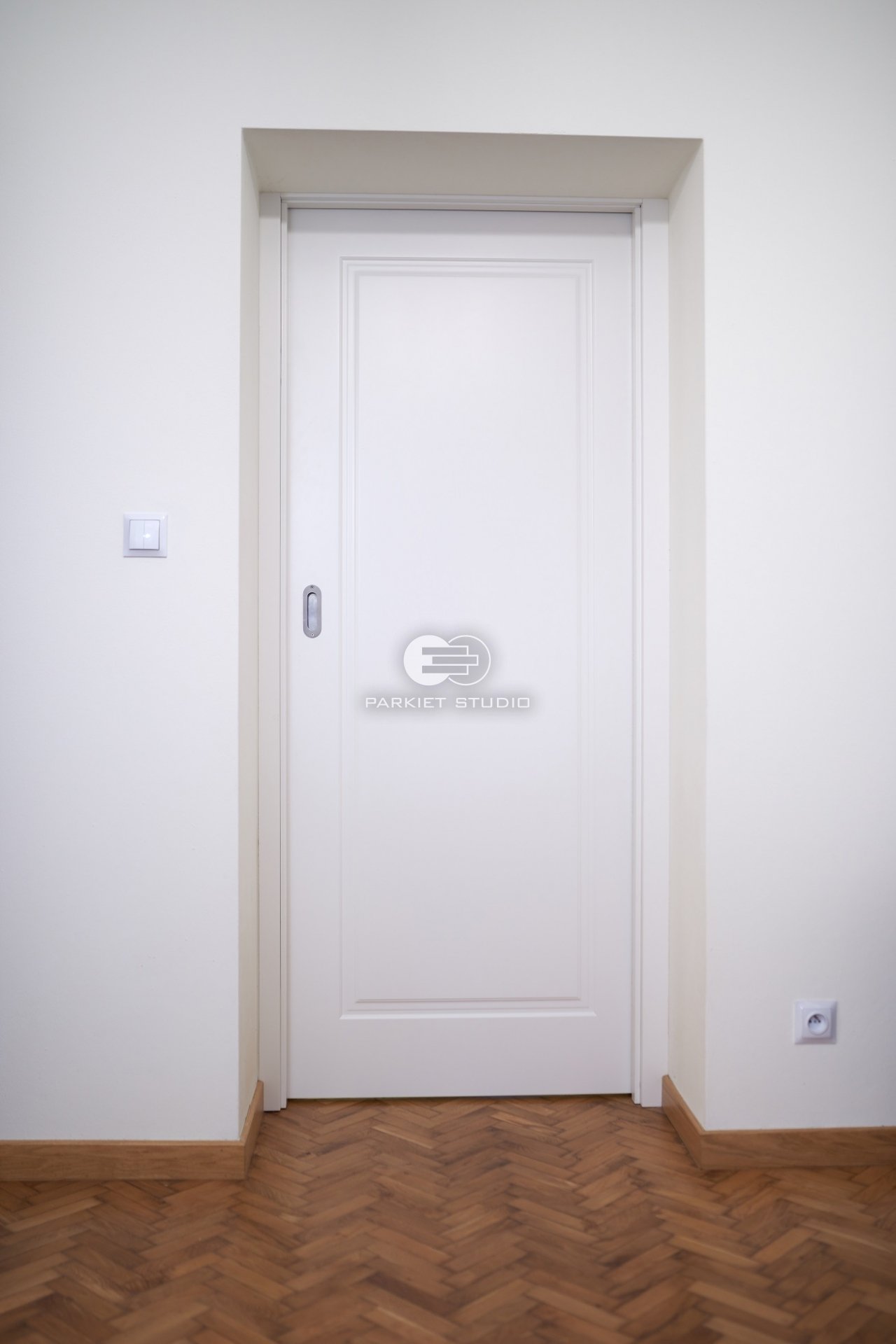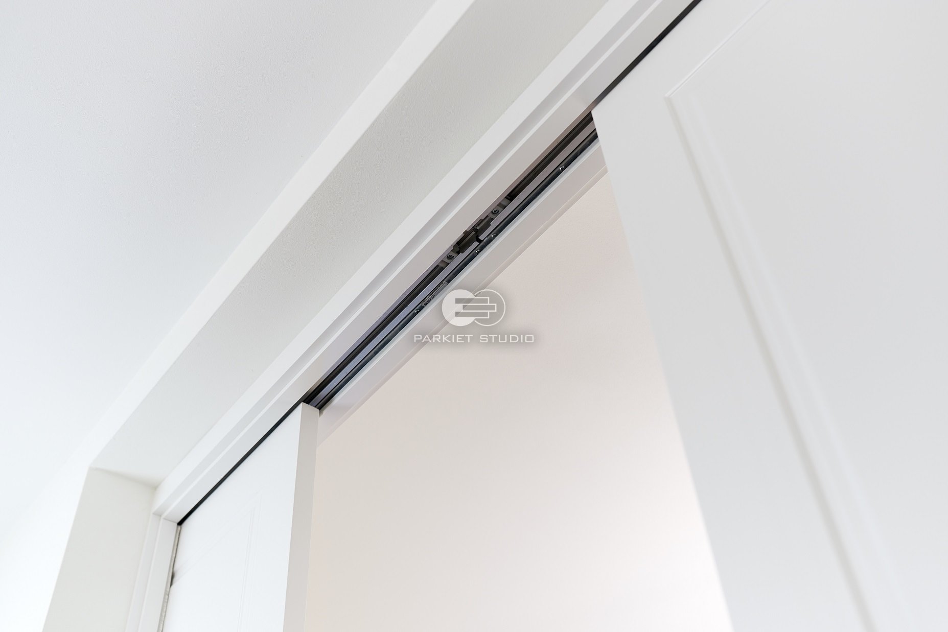 DRZWI SOFT S1 - OŚCIEŻNICA STANDARD 90 ST- OPASKI 80MM - LAKIER SATYNA BIAŁY RAL 9003 - PRZESUWNE W KASECIE